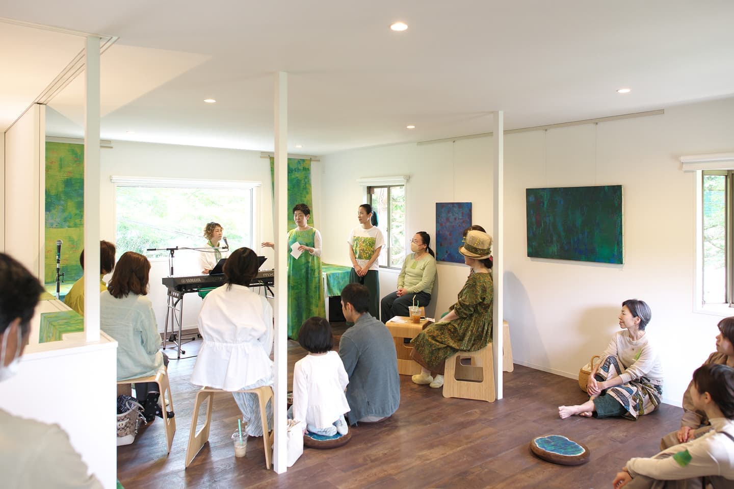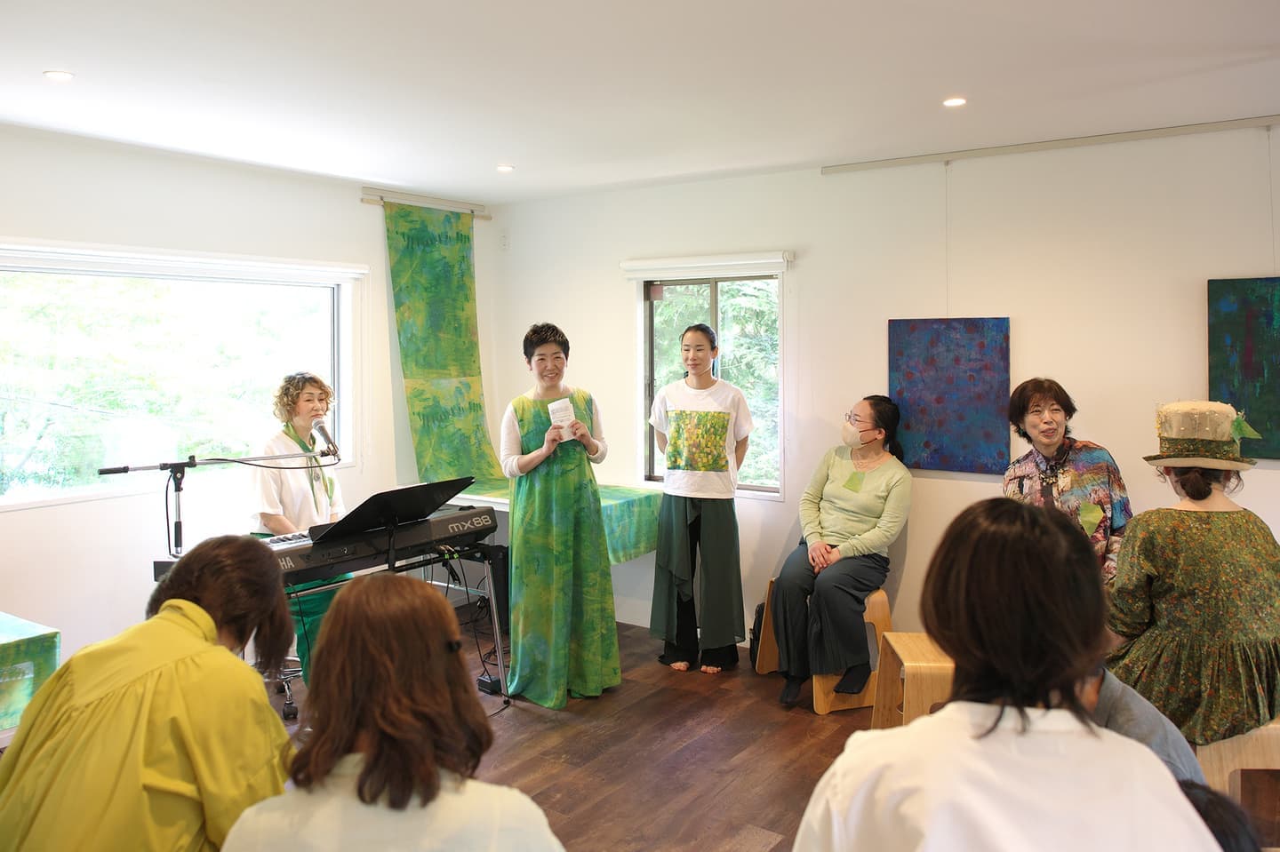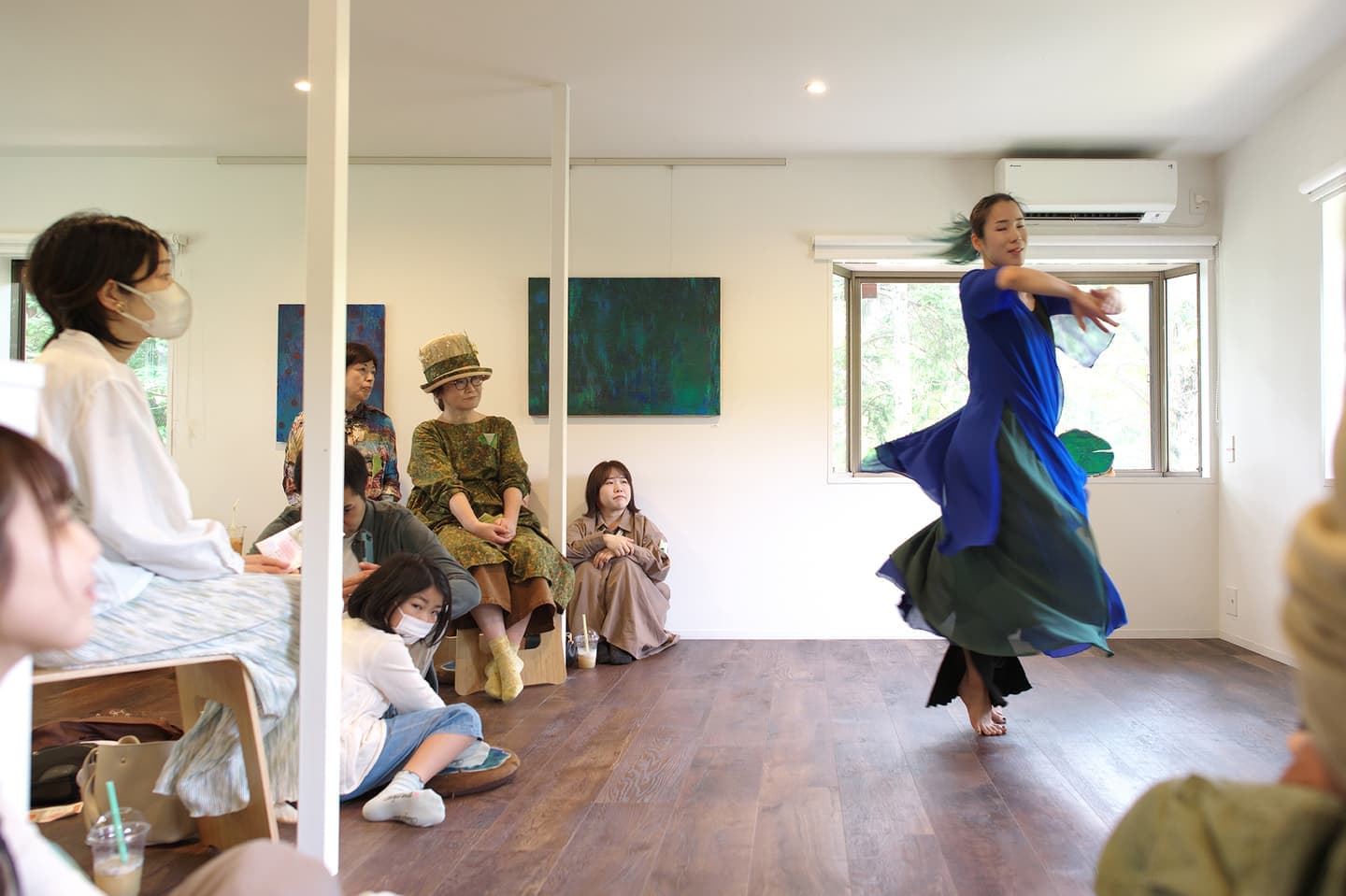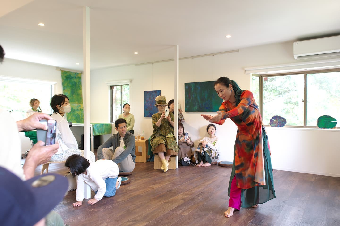 音楽家 中田理恵子×画家 柳田歳子がお互いにインスパイアされてできた [pictorial sound] そこにダンサーKaNaが加わったアートパフォーマンスイベント[sora森]