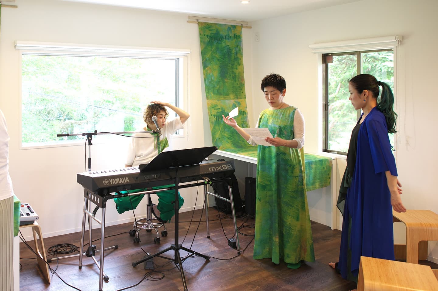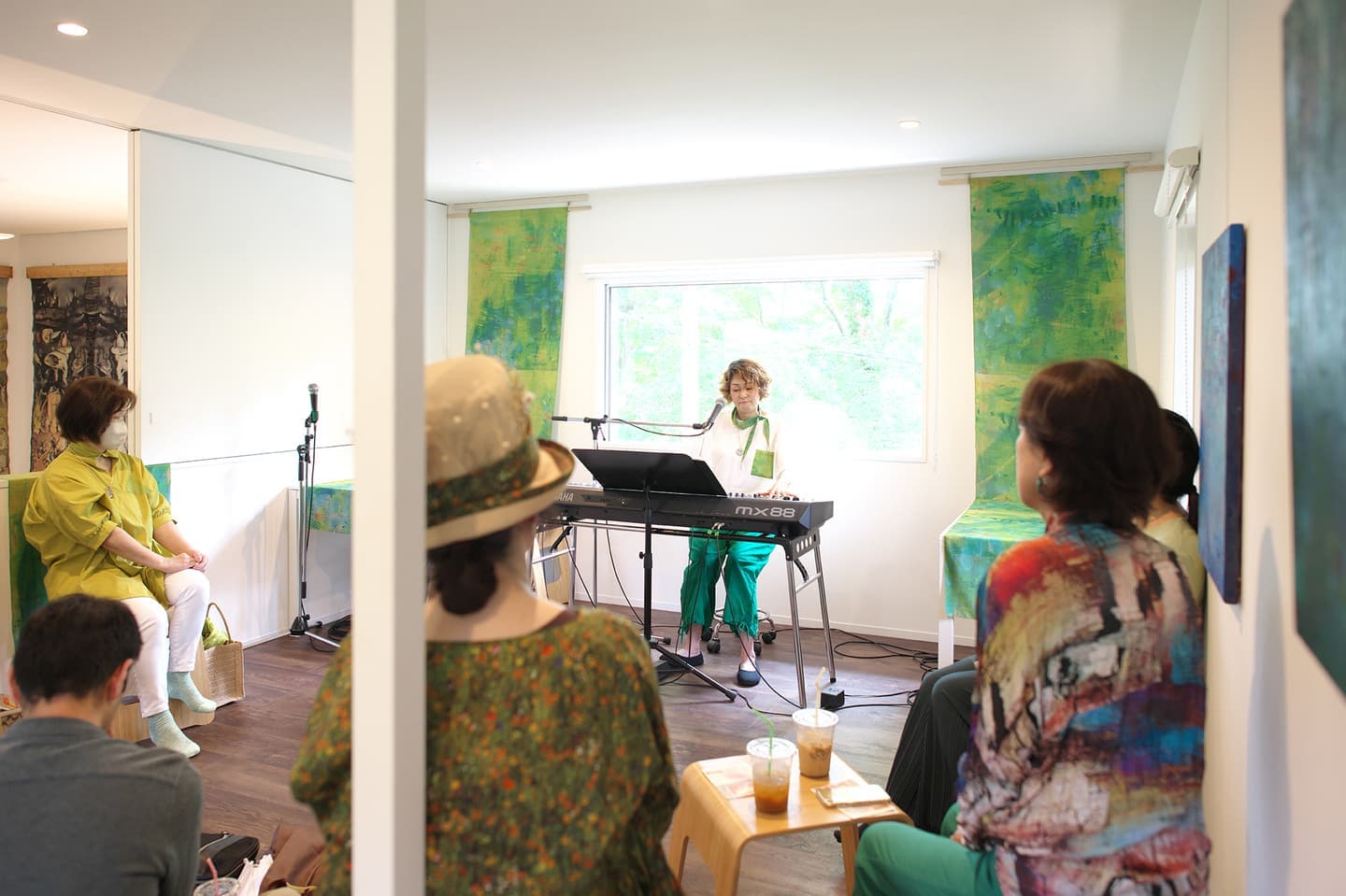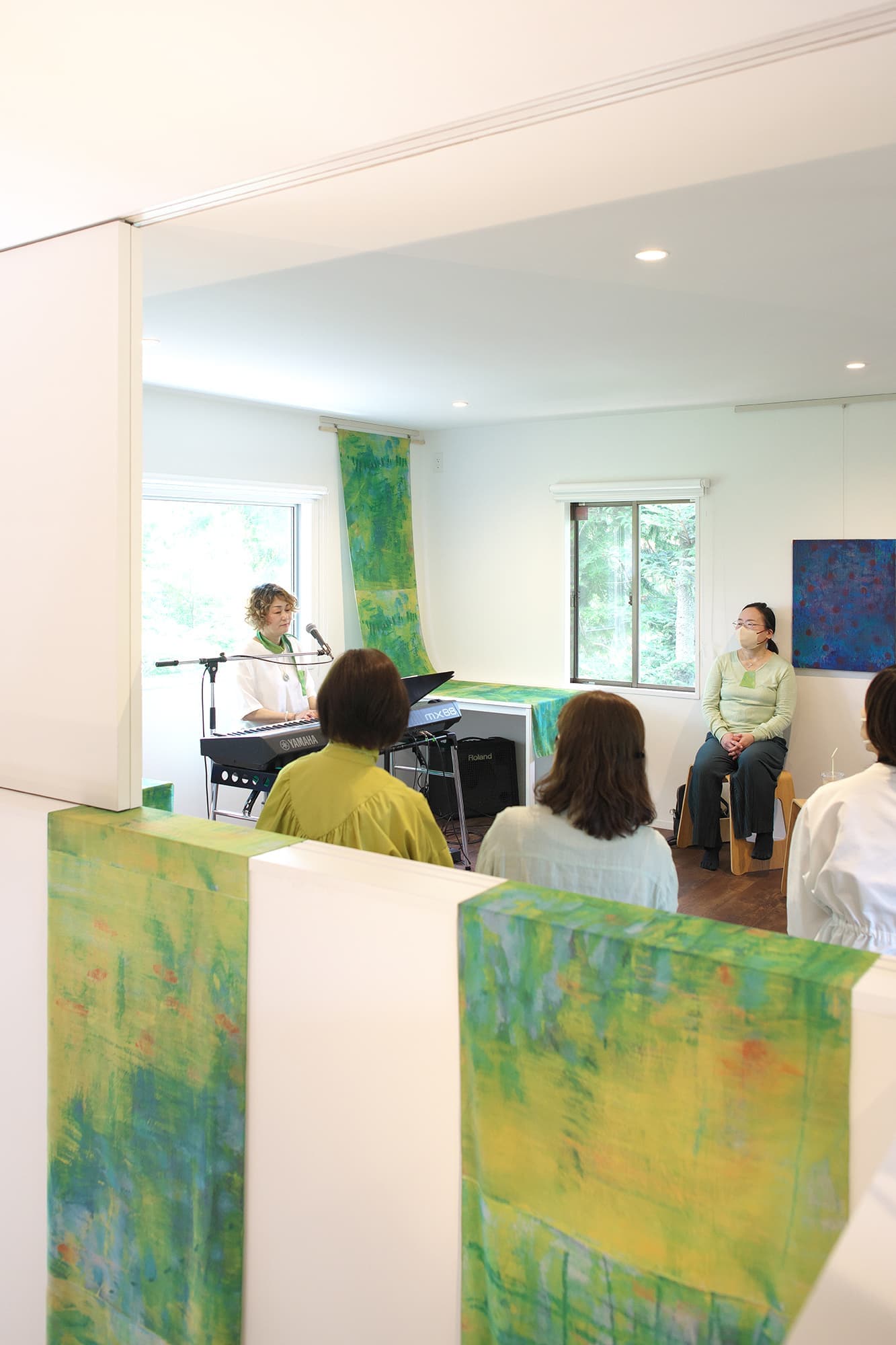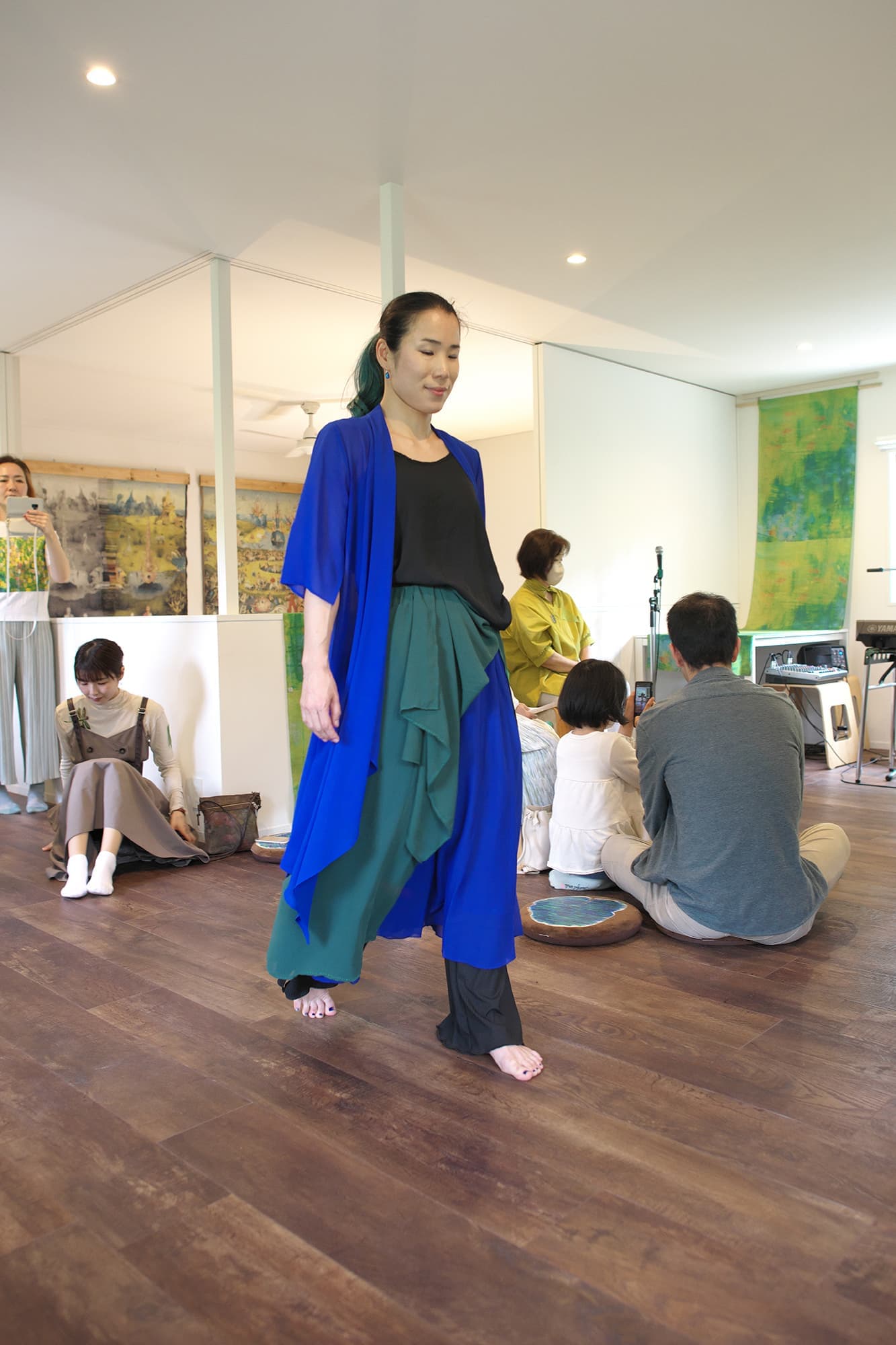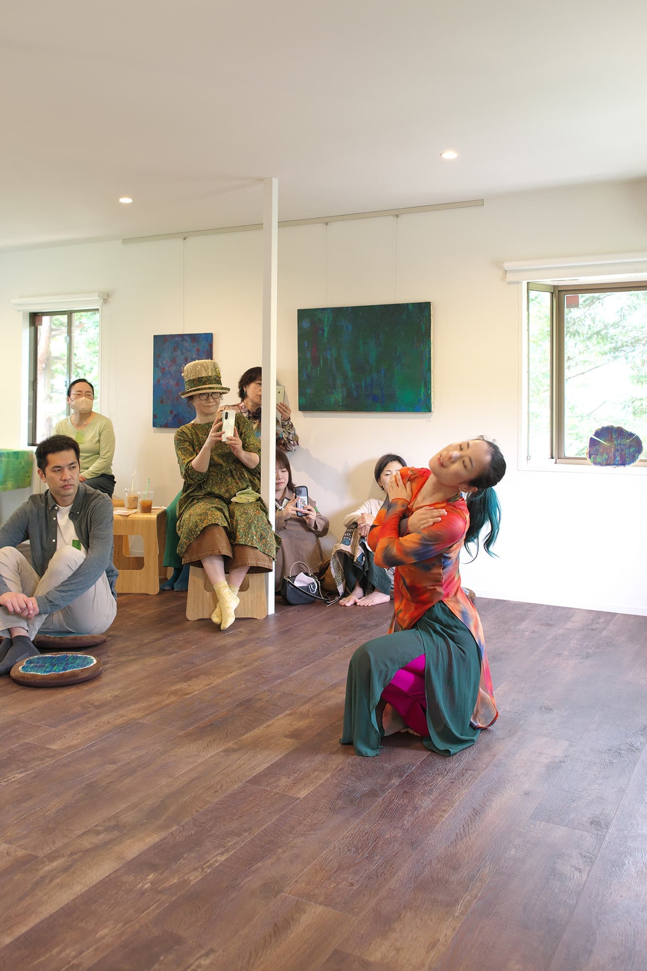 音楽家 中田理恵子×画家 柳田歳子がお互いにインスパイアされてできた [pictorial sound] そこにダンサーKaNaが加わったアートパフォーマンスイベント[sora森]