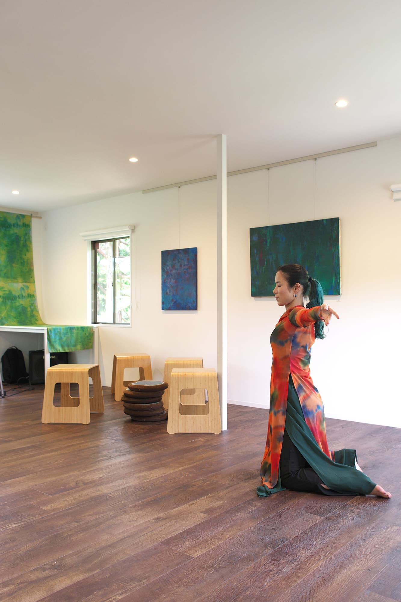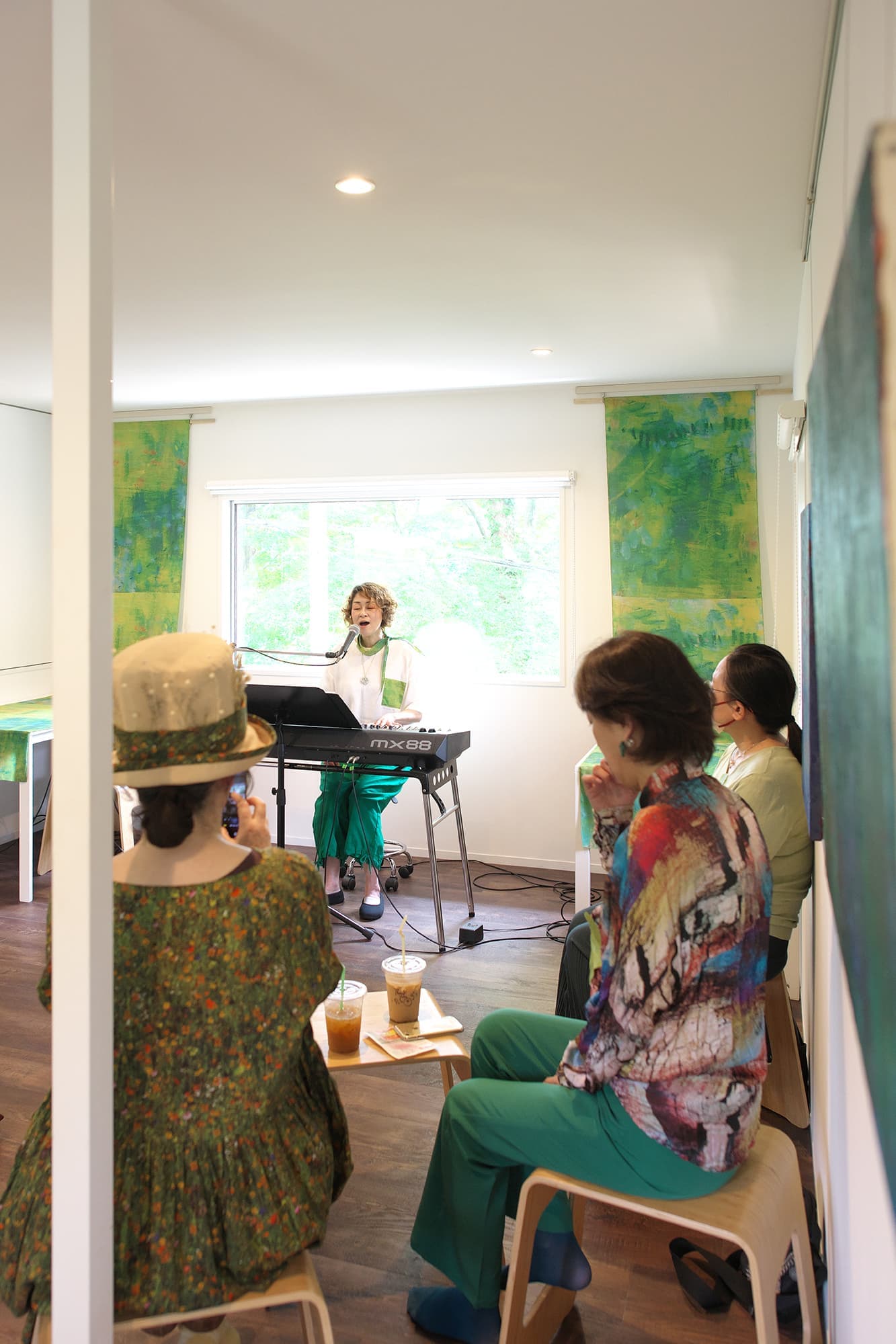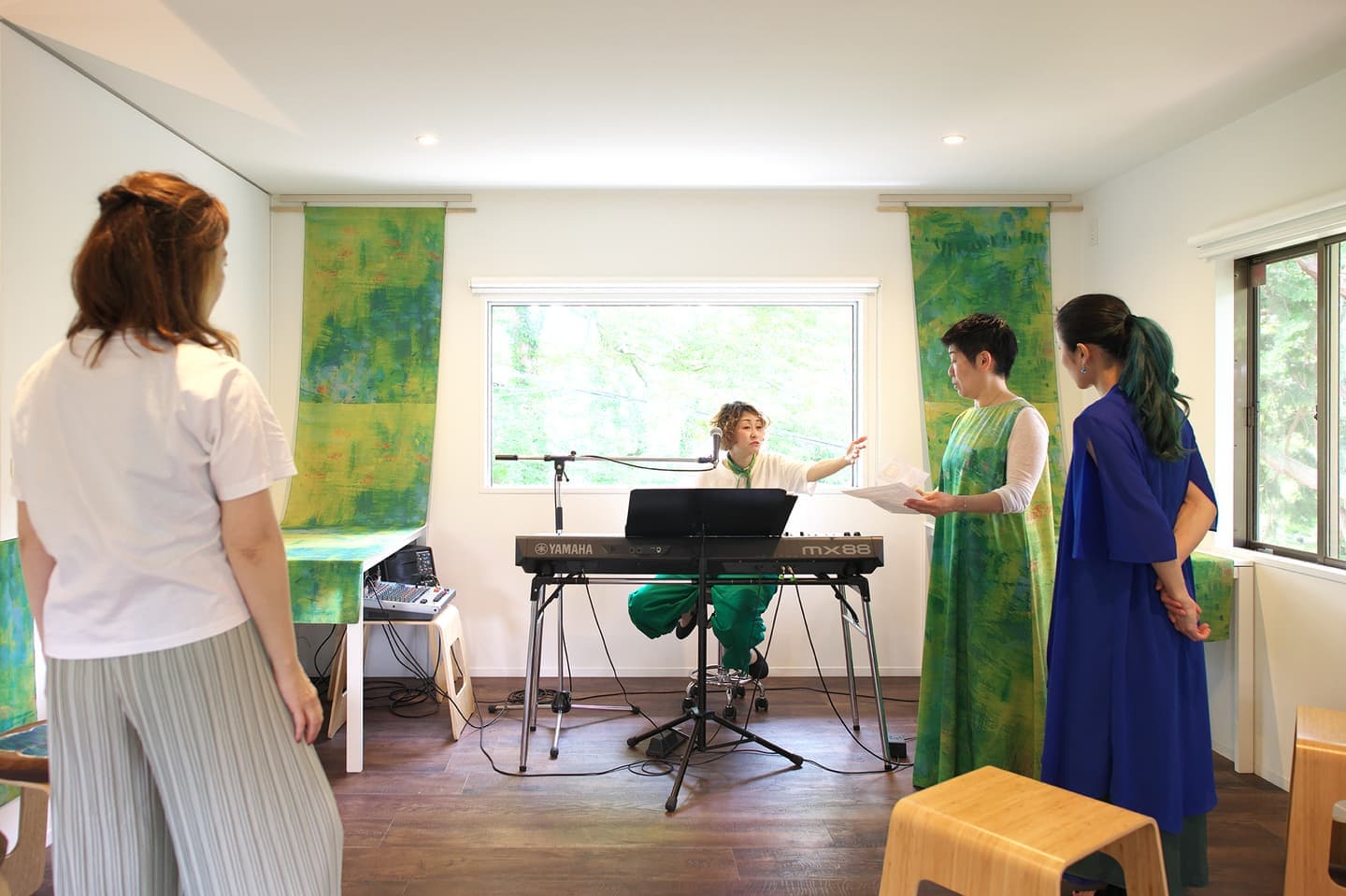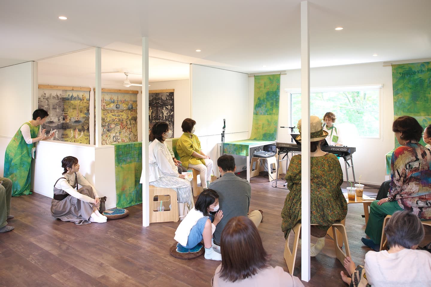 音楽家 中田理恵子×画家 柳田歳子がお互いにインスパイアされてできた [pictorial sound] そこにダンサーKaNaが加わったアートパフォーマンスイベント[sora森]
