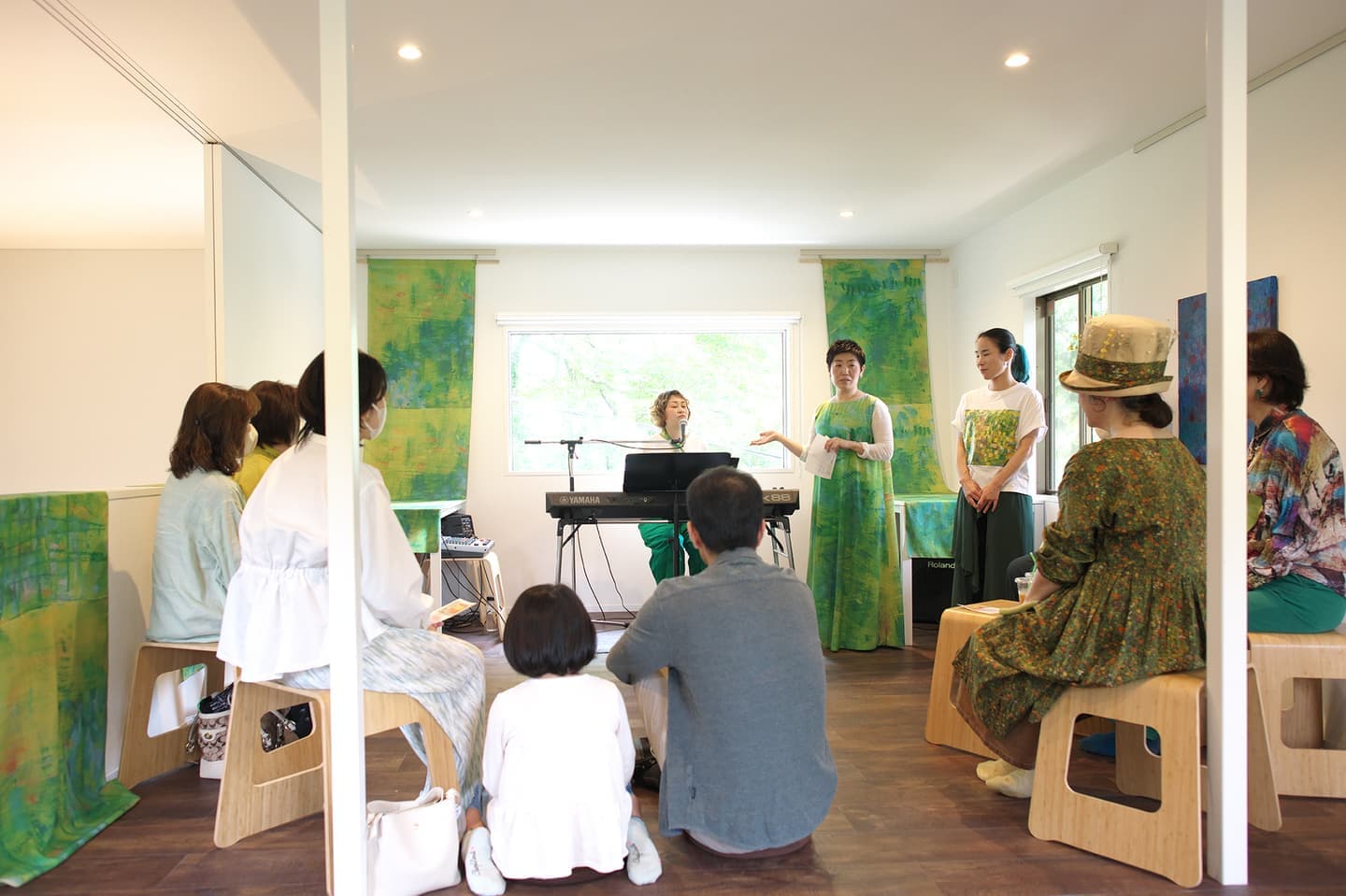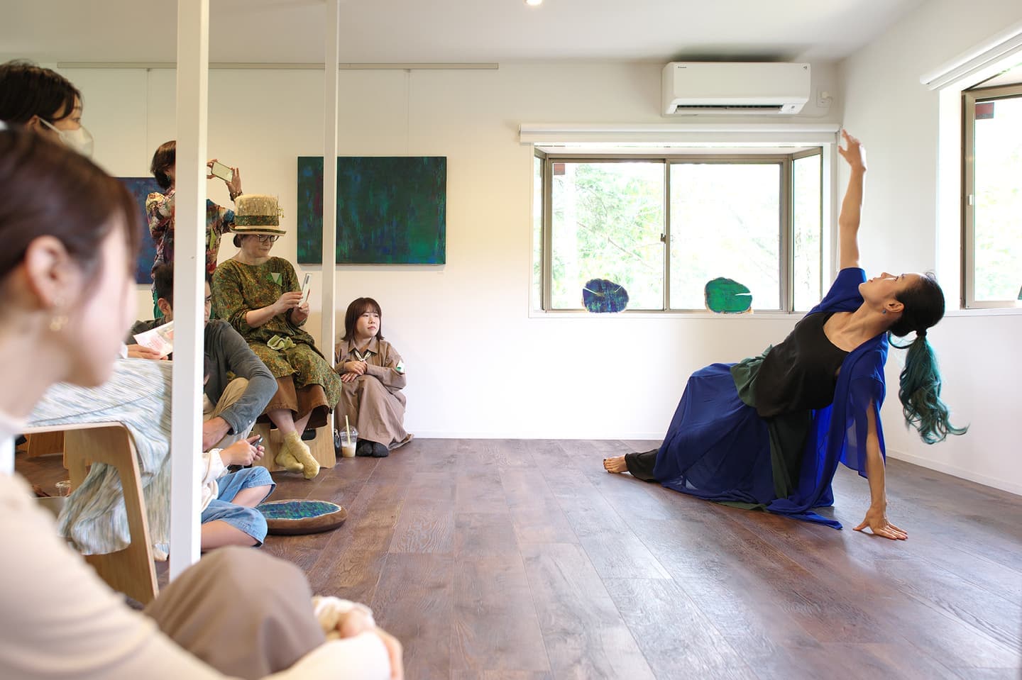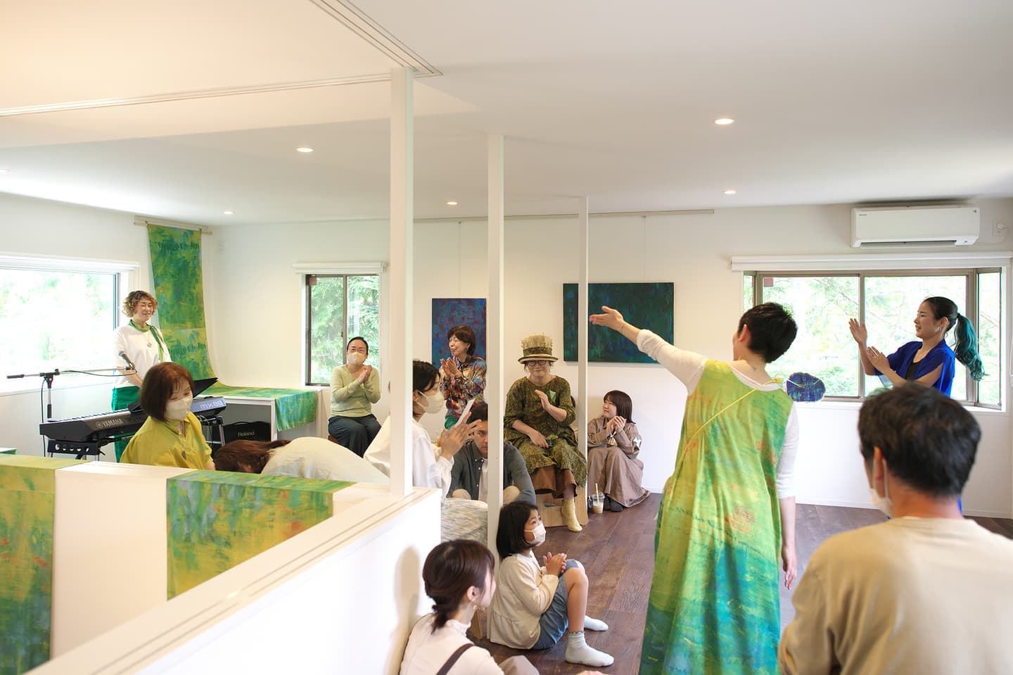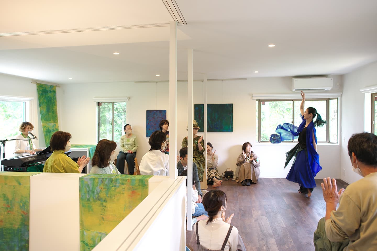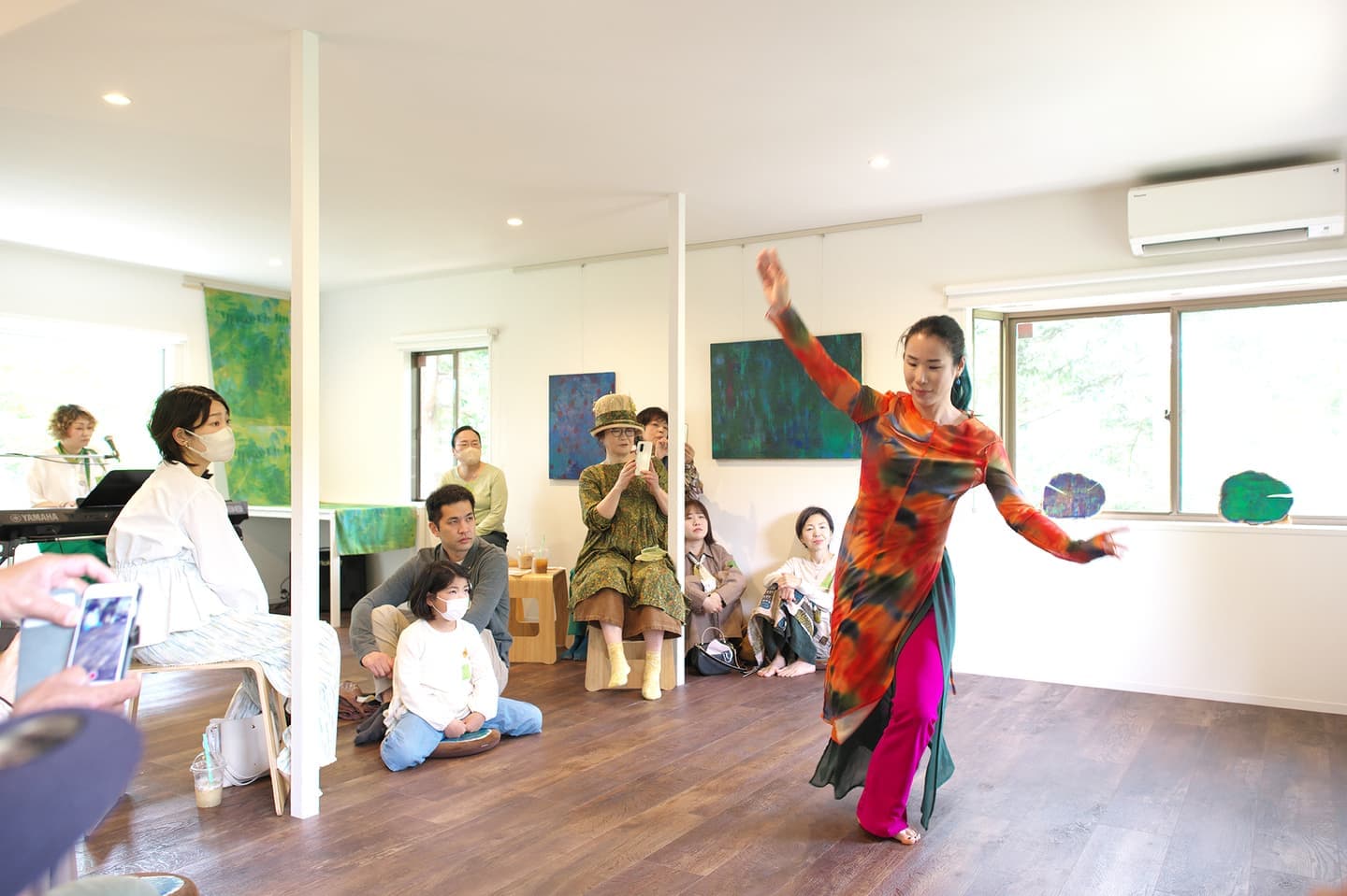 音楽家 中田理恵子×画家 柳田歳子がお互いにインスパイアされてできた [pictorial sound] そこにダンサーKaNaが加わったアートパフォーマンスイベント[sora森]