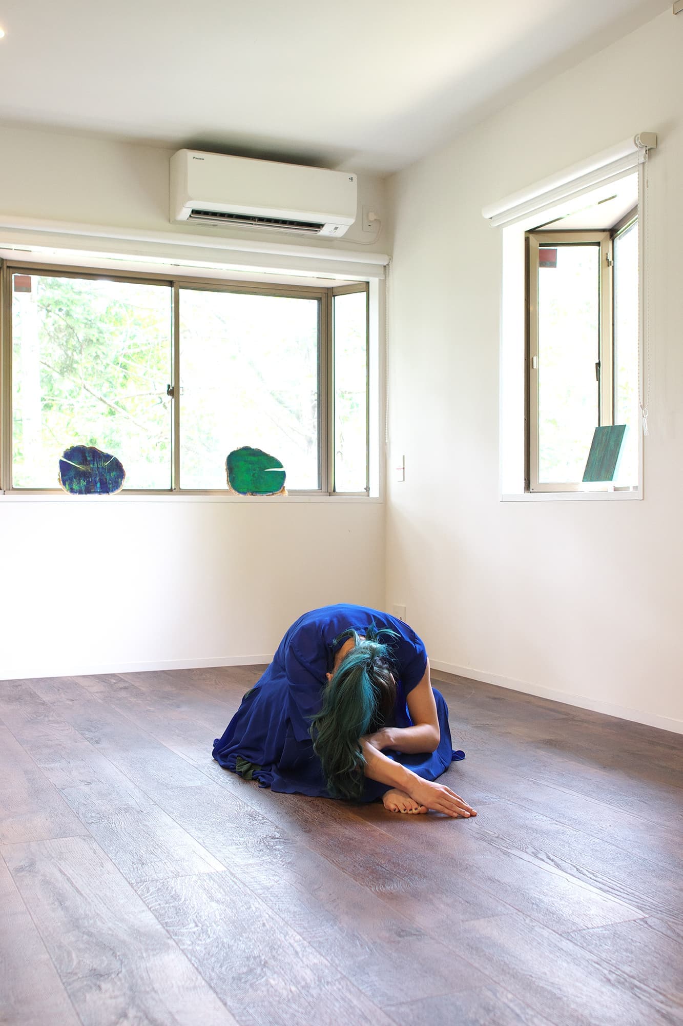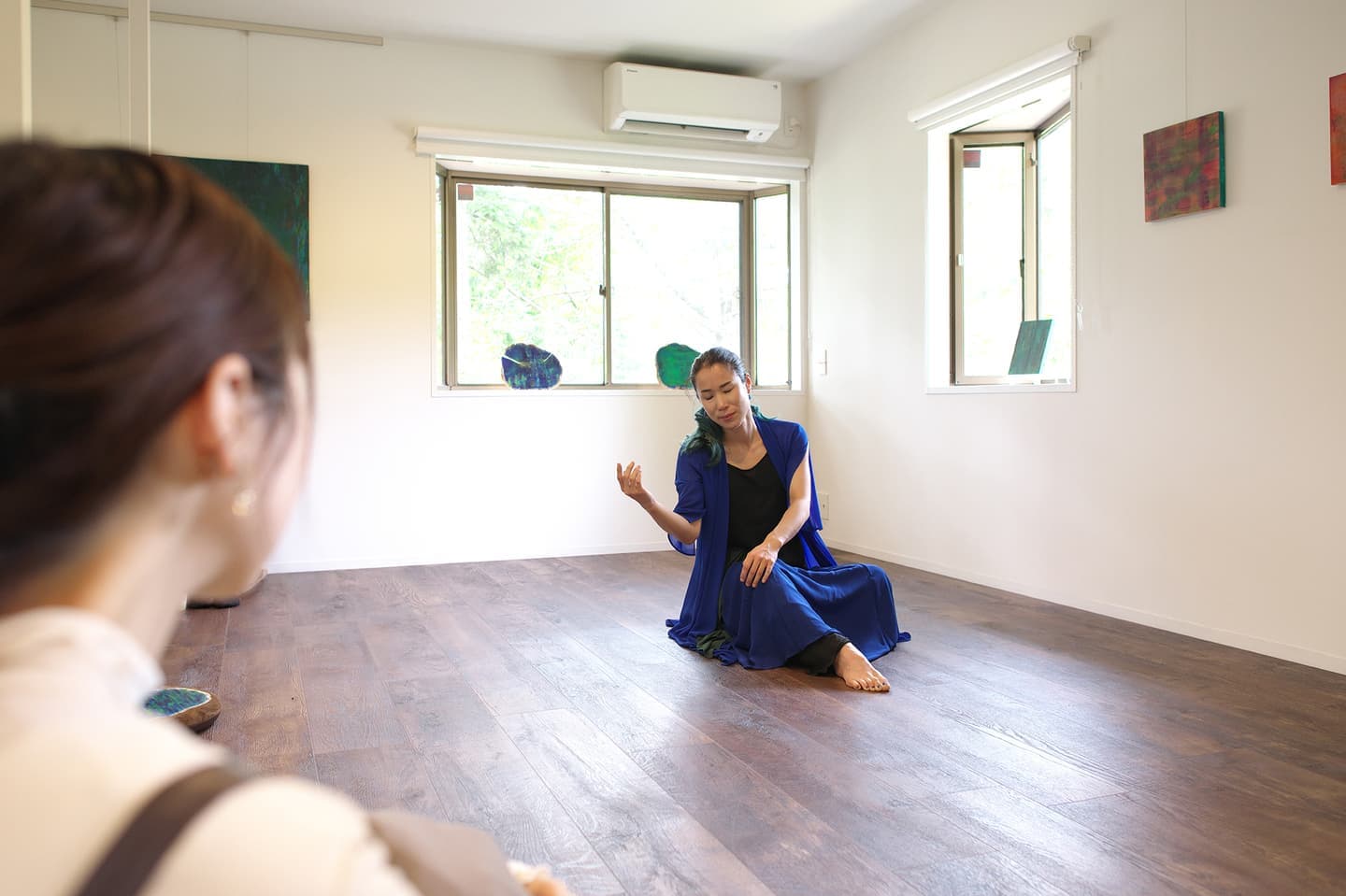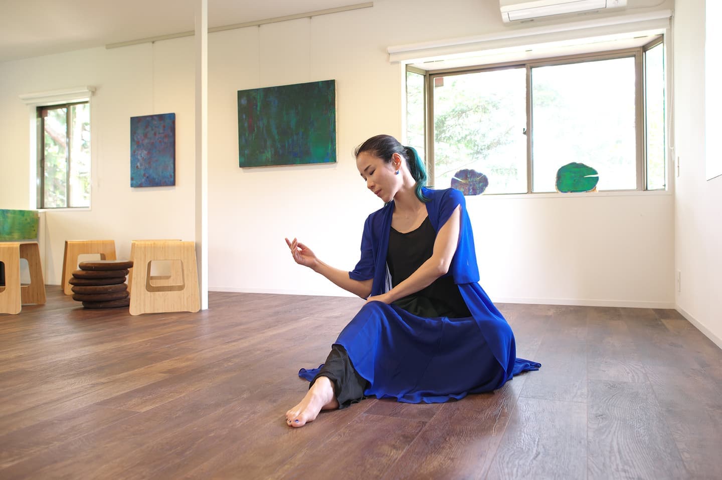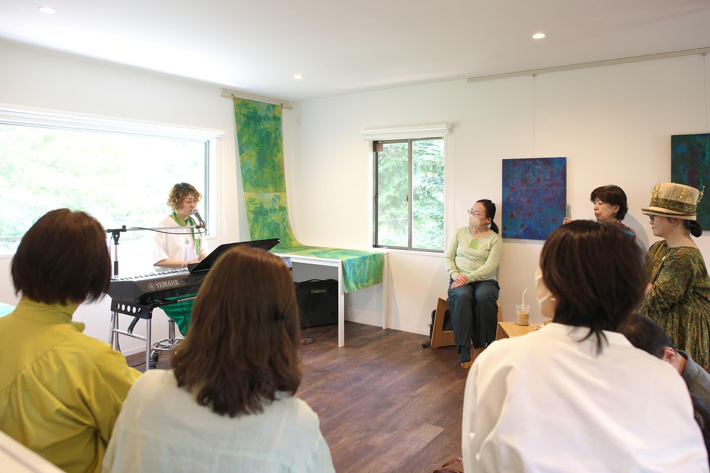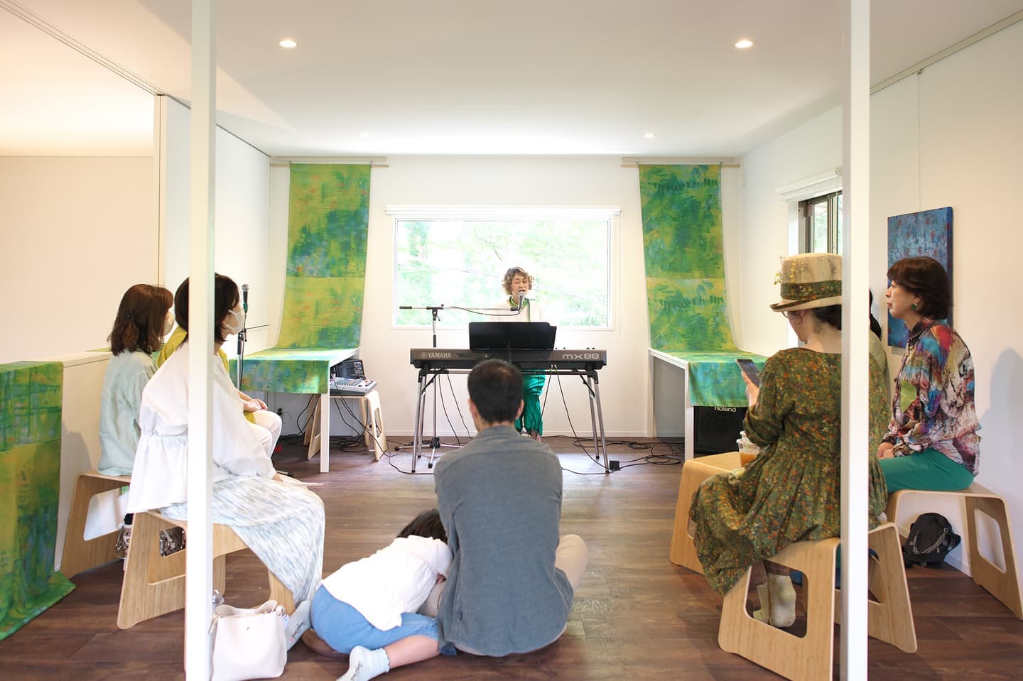 音楽家 中田理恵子×画家 柳田歳子がお互いにインスパイアされてできた [pictorial sound] そこにダンサーKaNaが加わったアートパフォーマンスイベント[sora森]